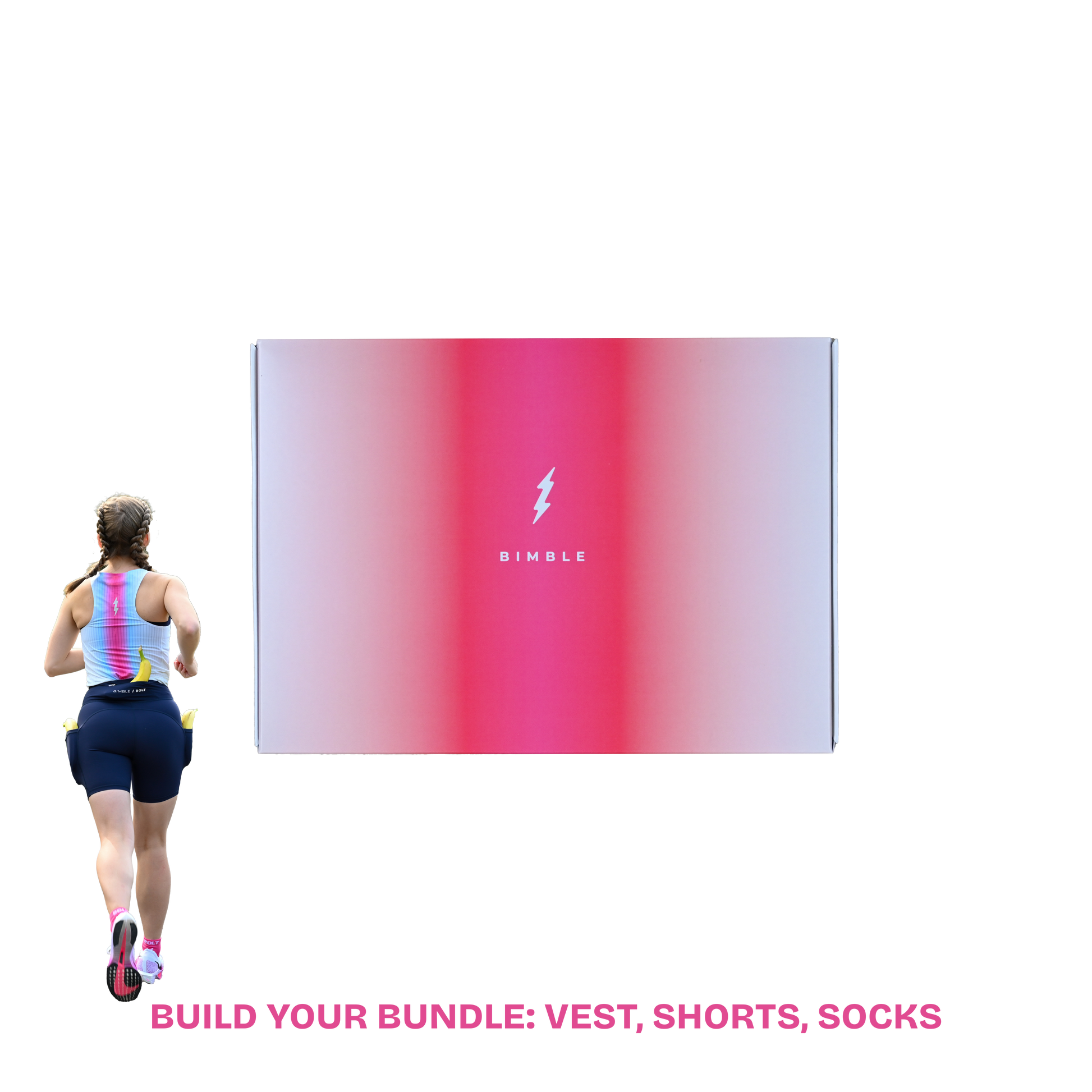 Build your ultimate running set - your choice of vest, shorts, and socks, all packed into one sleek Bimble & Bolt box. Designed to fit, flatter, and go the distance. High-performance fabrics, bold colours, and all the details runners love.